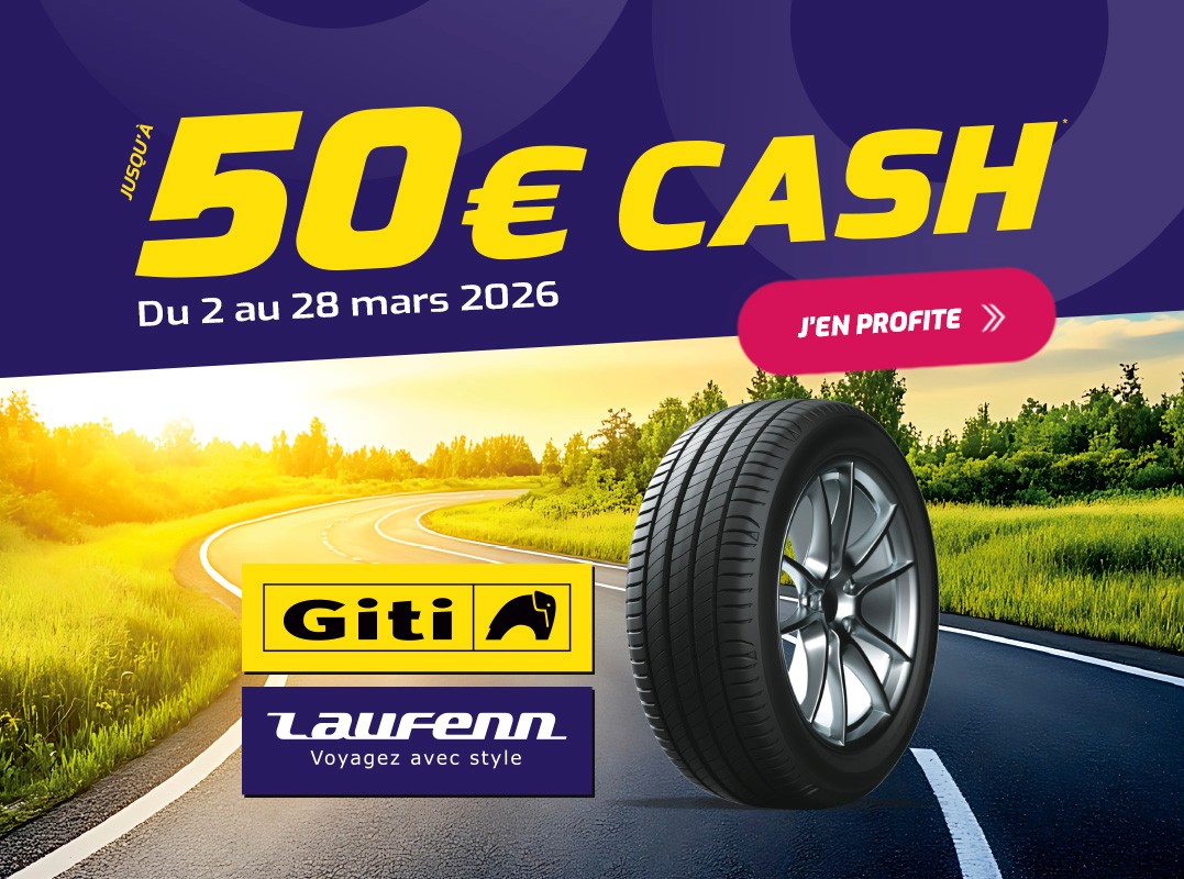 Jusqu'à 50€ cash sur les pneus Giti ou Laufenn* ! 🎉